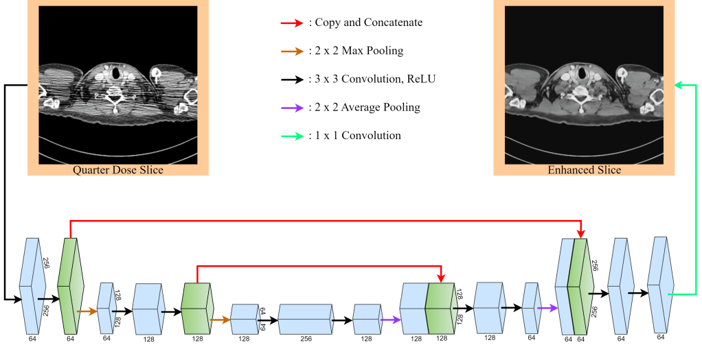 Blind tests conducted with practicing radiologists demonstrate that U-NET-enhanced quarter-dose CT images not only show significant visual improvement compared to their low-dose counterparts but are also diagnostically superior, even when juxtaposed with full-dose CT images.