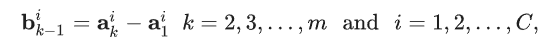 for the vectors in the training set of each class. The outputs in the first layer turn out to be the difference vectors in each of the classes. Then each difference vector is multiplied with a scalar βji with i=1,2,…,C and j=1,2,…,m−1 in order to obtain the matrix BiCVA for i=1,2,…,C.